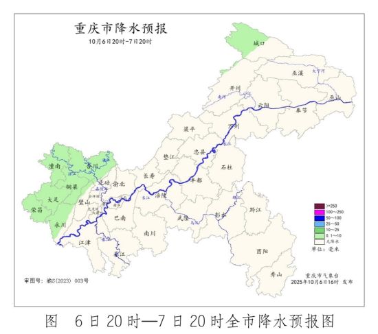 10月6日白天,重庆大部地区多云到晴,气温16~36℃。