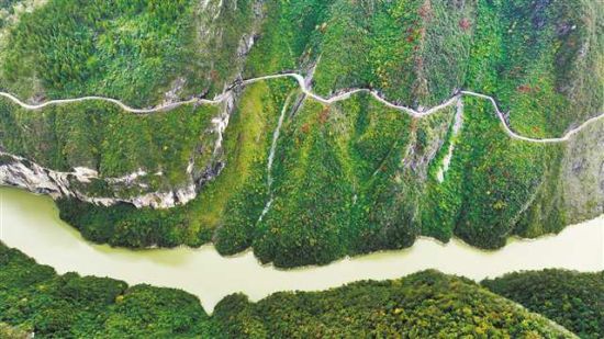11月11日,车辆行驶在黔江区阿蓬江镇的一条连接两村的“挂壁公路”上。