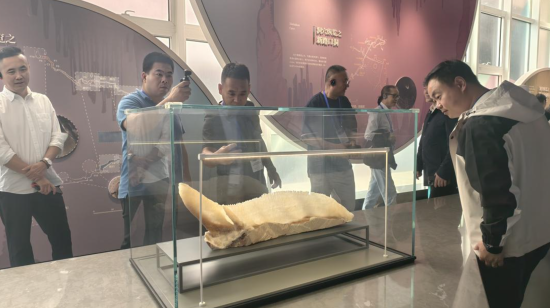 午后,参访团走进中国·武隆喀斯特世界自然遗产博物馆,推开一扇通往地质岁月的大门。这座坐落于游客接待中心的建筑,简约而厚重,建筑面积五千八百平方米,展示面积两千三百平方米,以简洁之姿承载着亿万年的自然史诗。五大主题展厅次第铺展,石钟乳、石笋、卷曲石等原生矿物标本陈列有序,天生三桥微缩实景模型栩栩如生,沉浸式光影沙盘动态还原流水溶蚀、地壳抬升的全过程,本土珍稀物种珙桐、黑叶猴、红腹锦鸡标本与生态影像生动逼真。展厅内,地质剖面复原图、遗产监测数据、保护历程图文墙层层递进,将无形的地质演化,化为可看、可触、可感的鲜活呈现。