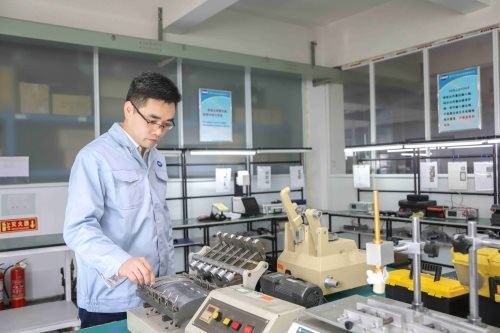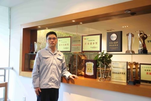图为李兵兵查看机器运转情况。受访者供图