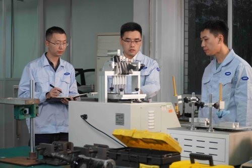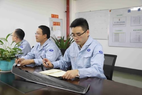 图为李兵兵与同事们进行技术攻坚。受访者供图