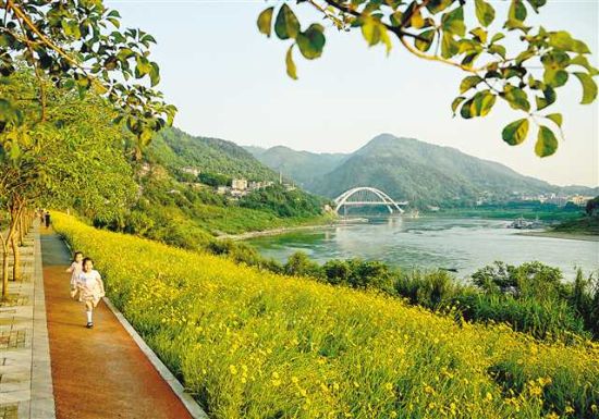 东阳街道滨江公园曾经是一块杂草丛生的荒地。当地整治滨江路沿线环境,新建了观景广场、观景平台、彩色休闲步道、多彩绿化带等,将荒地变成美丽公园。滨江公园集观景、漫步、休憩、健身等功能于一体,成为远近居民休闲娱乐的好去处。(记者 万难 摄/视觉重庆)