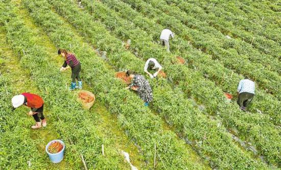 9月25日,巫山县红椿土家族乡,村民们正在采摘辣椒。