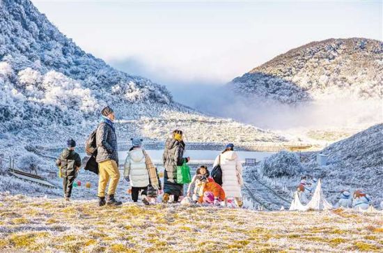 1月24日,南川区金佛山景区雪后放晴,雪景美如画,吸引游客来此赏雪游玩。
